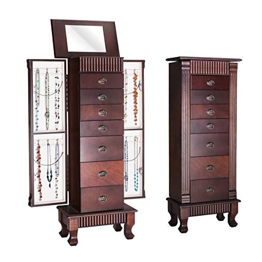 Songmics Large Jewelry Armoire Cabinet Standing Storage Chest Neckalce Organizer Dark Walnut