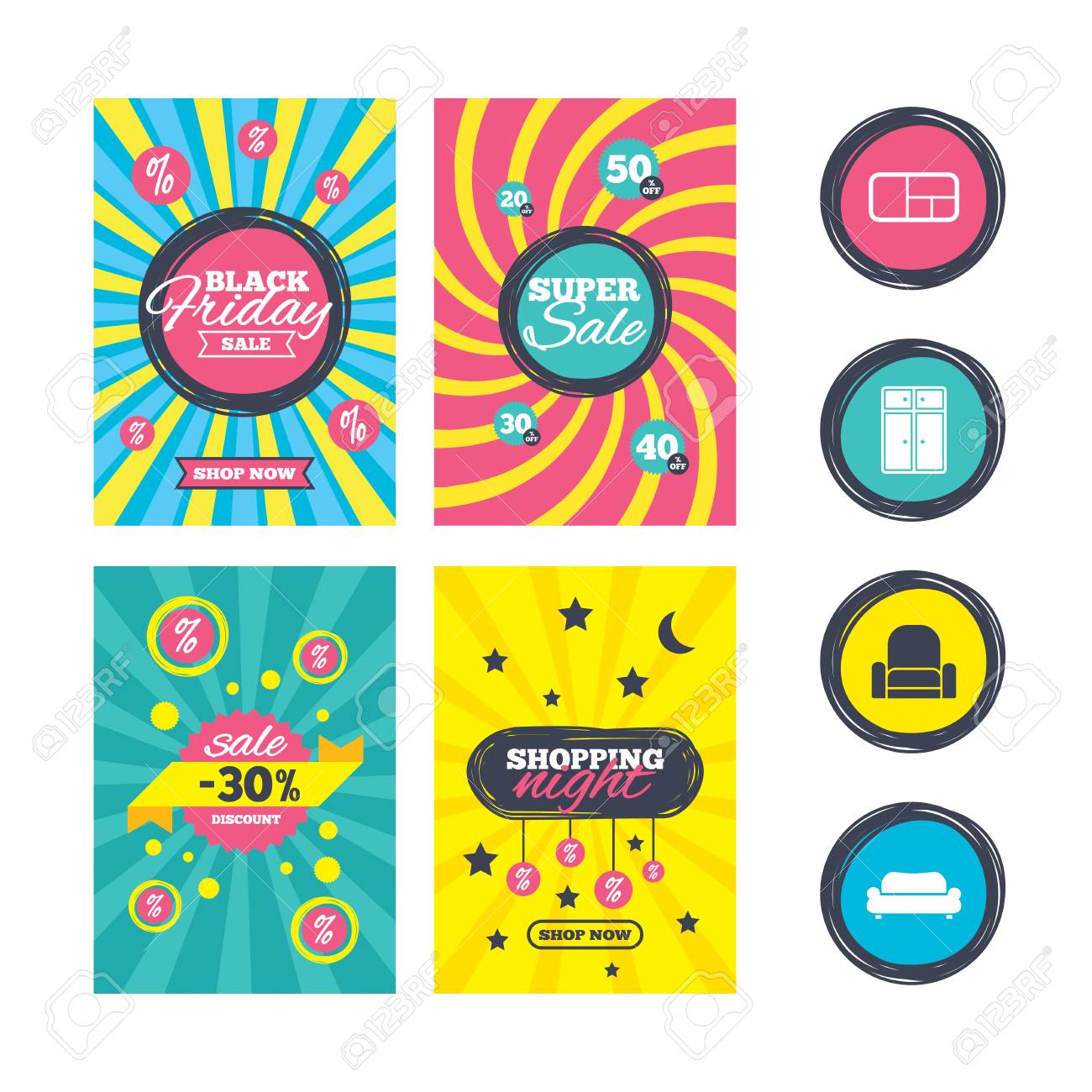 Sale Website Banner Templates Furniture Icons Sofa Cupboard
