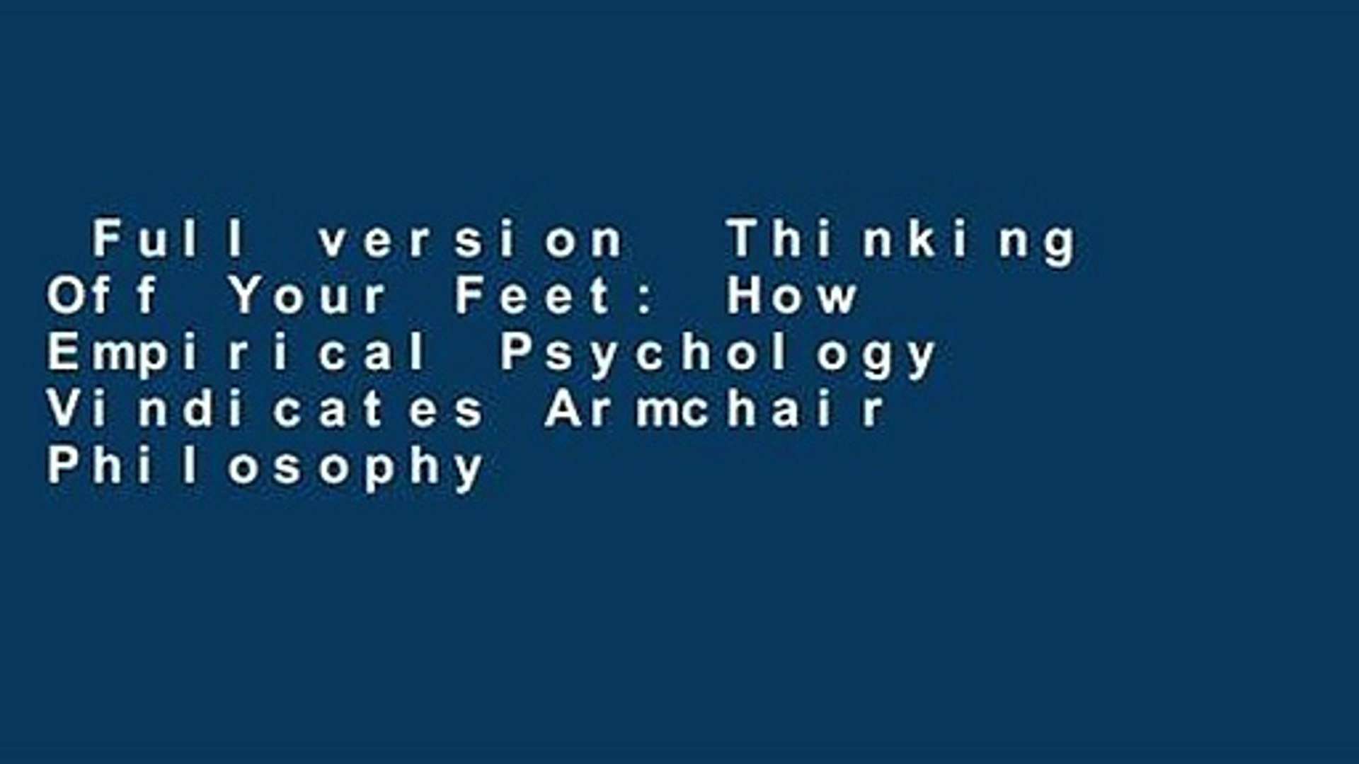 Full Version Thinking Off Your Feet How Empirical Psychology Vindicates Armchair Philosophy