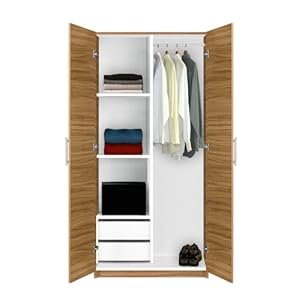 Tuhome Austral Collection 3 Door Armoire Closet Wardrobe Storage Cabinet Organizer With 2 Drawers 5 Concealed Shelves And Cloth Rod Great For Storage