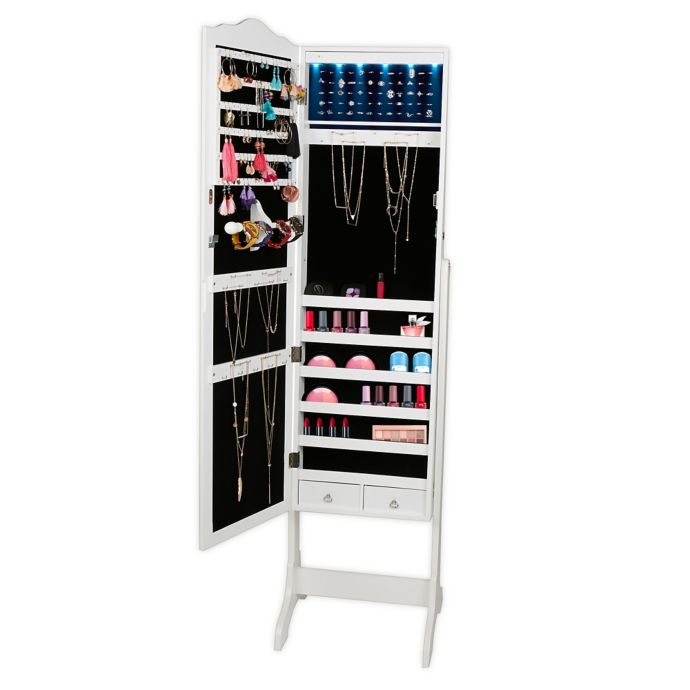 Mind Reader Standing Lighted Jewelry Armoire In White Bed