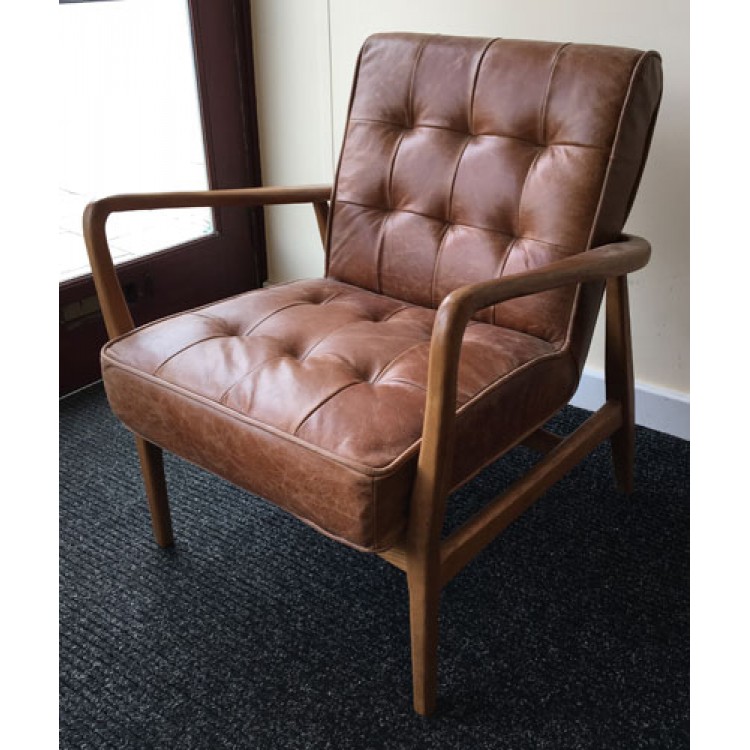 Mid Century Button And Stud Brown Leather Armchair Accent