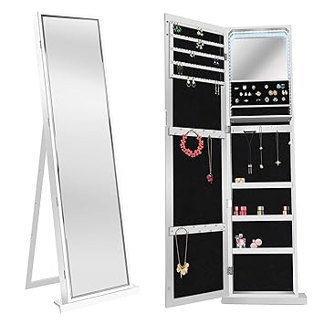 Enstver Jewelry Cabinet Armoire Standing Wall Organizer With Full Length Mirror