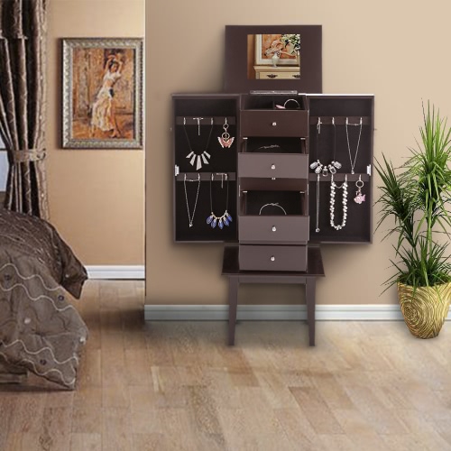 Ikayaa Antique Standing Jewelry Armoire Cabinet With Mirror