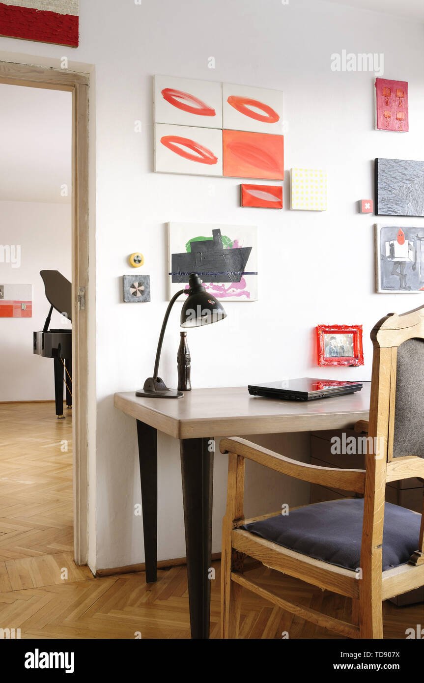 Wooden Desk And Vintage Armchair Next To Living Room