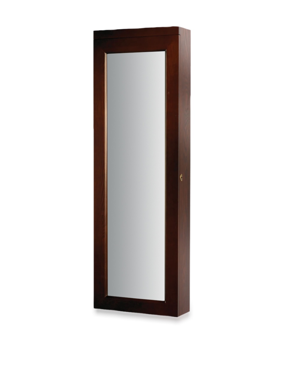 Lends both organization and traditional style to your homeas a wall mounted furnishing finished in a handsome espresso stain this elegant jewelry armoire saves space while providing smart led lights to help you in your accessory selection and a mirror for correct jewelry placement. Lends both organization and traditional style to your homeas a wall mounted furnishing finished in a handsome espresso stain this elegant jewelry armoire.