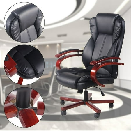 Wooden Arm Computer Chair Desk Task Swivel Armchair Pu
