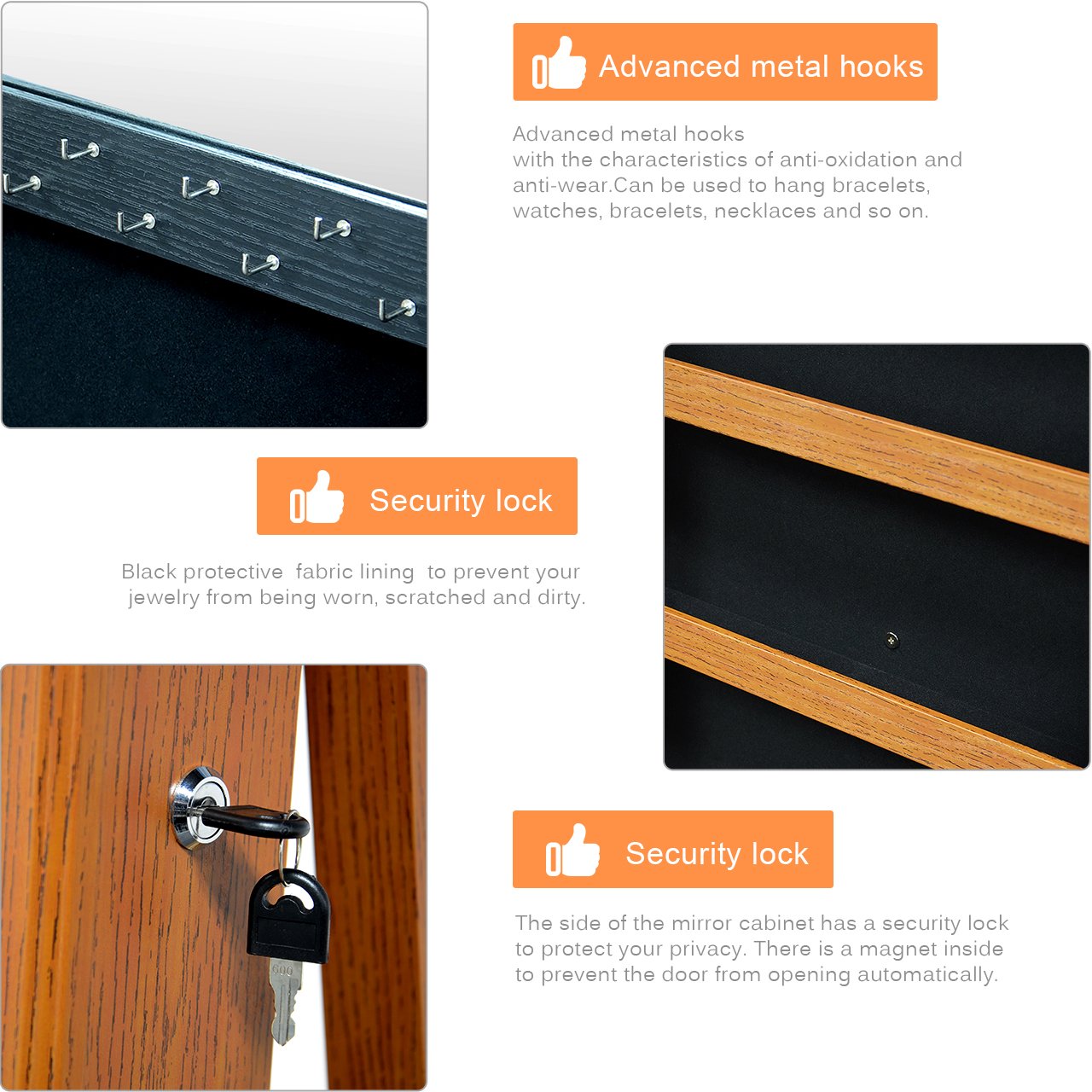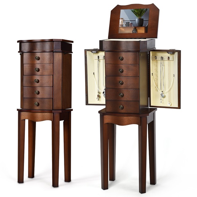 Langria Lockable Jewelry Cabinet Jewelry Armoire With Mirror Jewelry Holder Organizer Storage 4 Angle Adjustable Brown