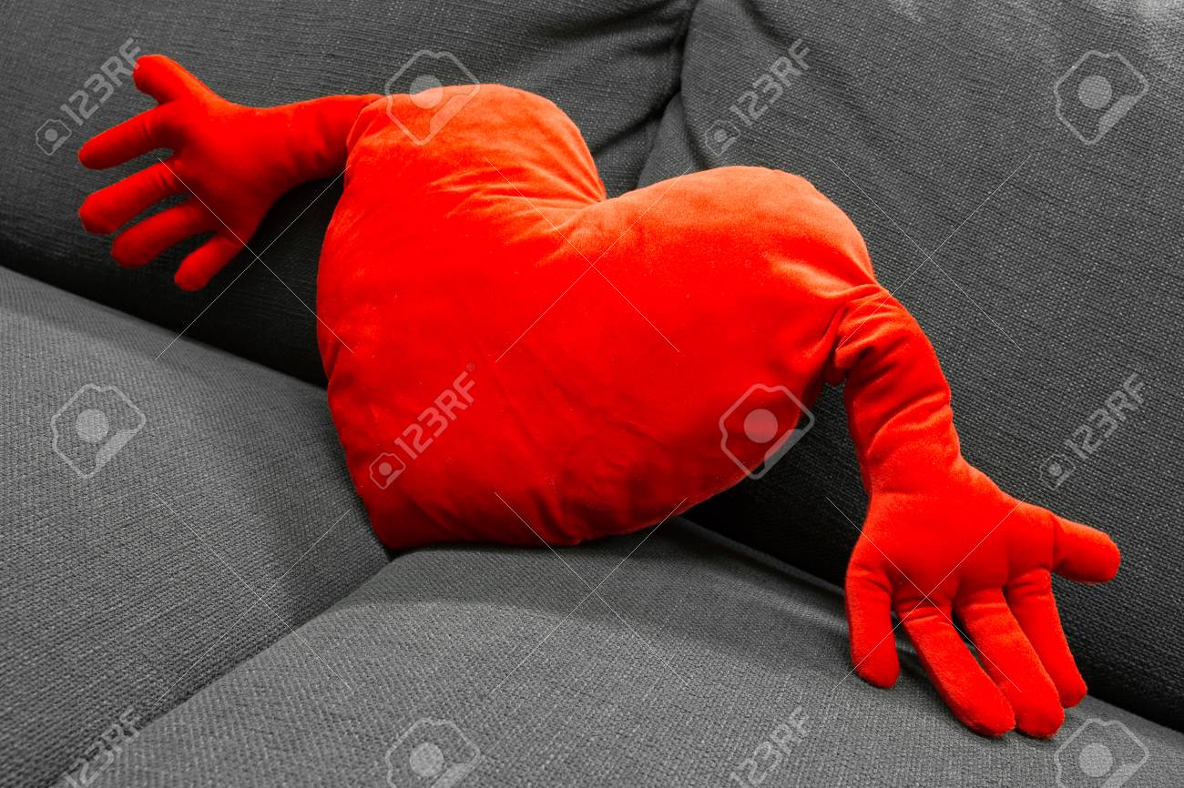 A Red Heart Shaped Pillow With An Armchair