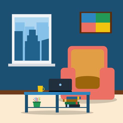 Room Interior With Armchair Picture Laptop And Coffee Table