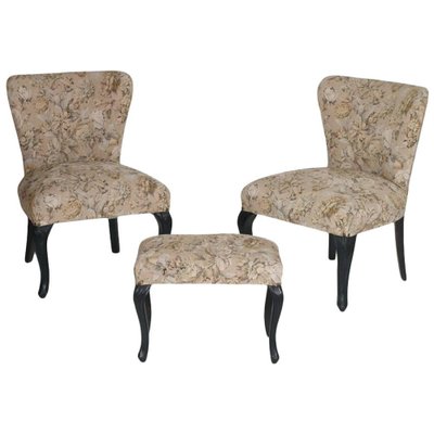 Art Nouveau Ebonized Walnut Armchairs And Ottoman Set