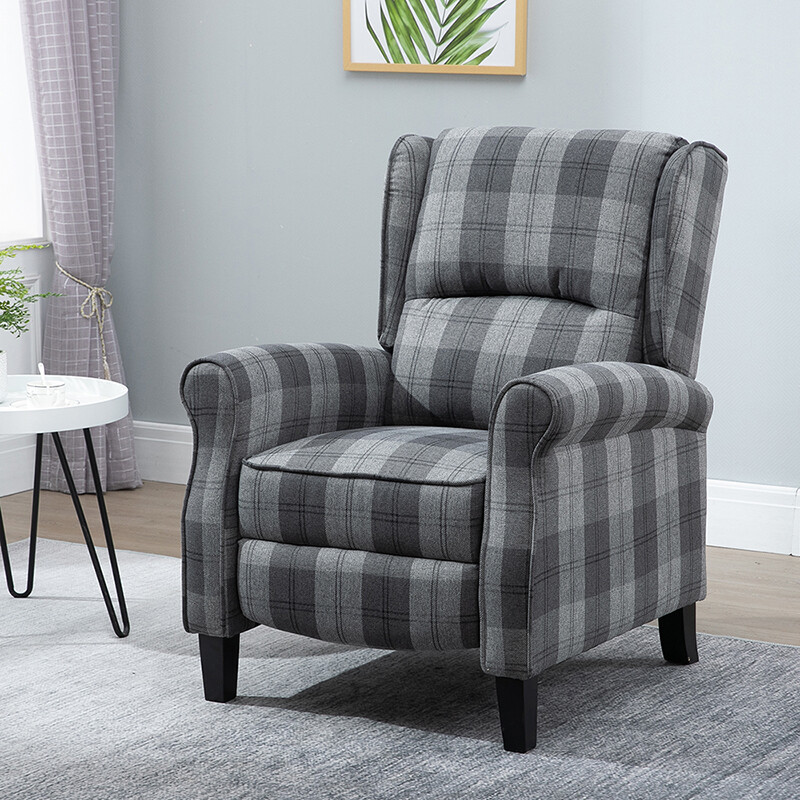 Details About Wing Back Fireside Check Fabric Recliner Armchair Sofa Lounge Cinema Chair Grey