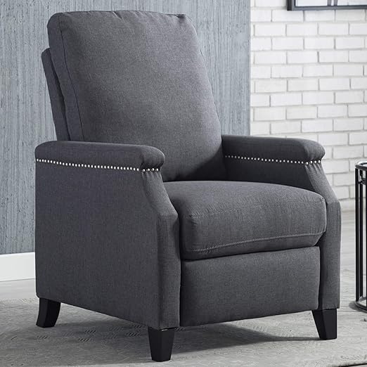 Canmov Push Back Recliner Chair With Nail Armrest Modern Fabric Reclining Chair Gray01