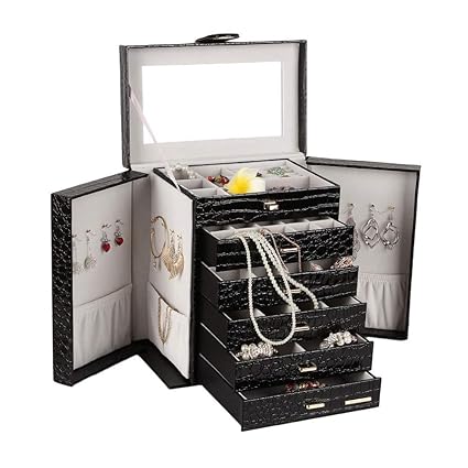 Glenor Co Earring Organizer Holder 75 Small 4 Large Slots Classic Jewelry Box With Drawer Modern Closure Mirror 4 Trays Earrings Ring Or