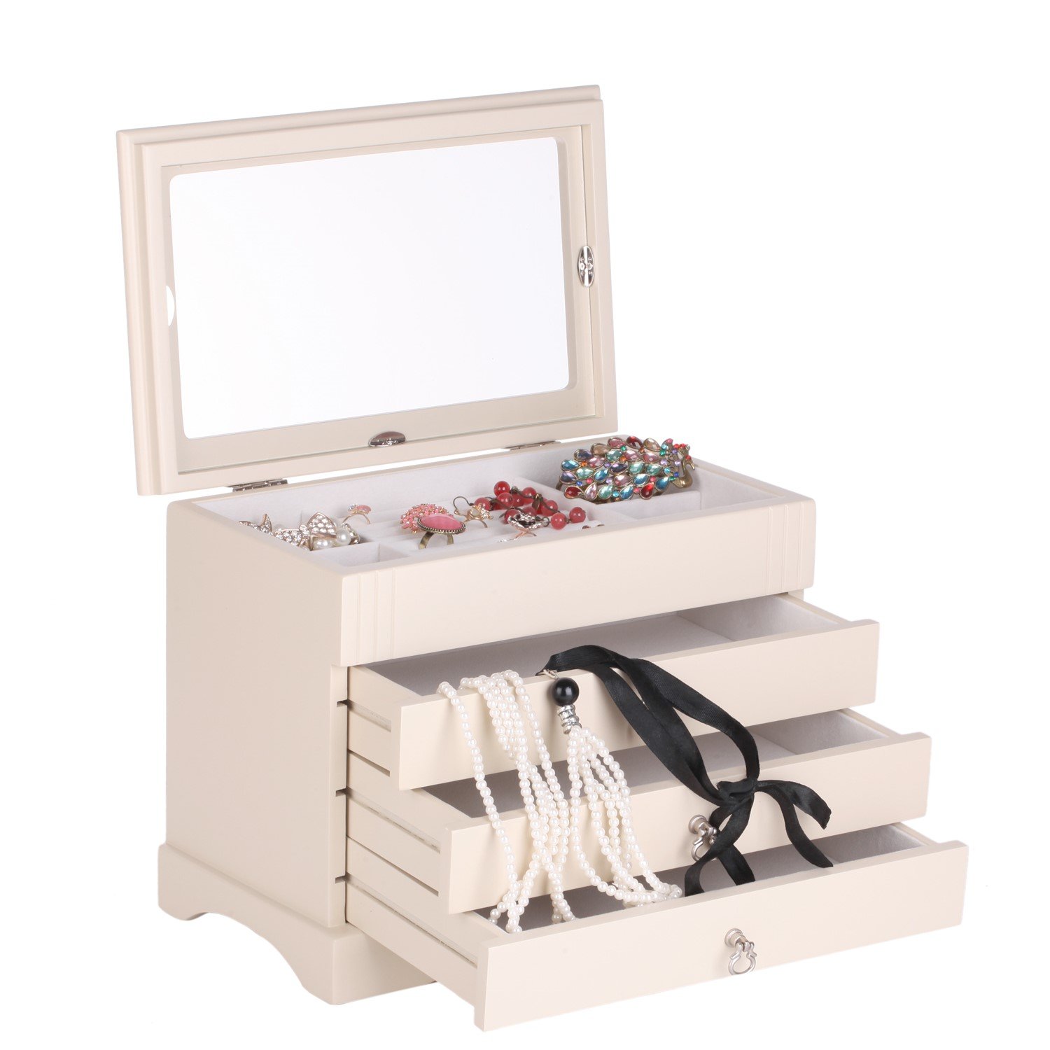 Ren Handcraft Large Musical Mirror Jewelry Storage Box With 6 Pullout Drawers Girls Earring Jewellery Armoire Necklace Organizer