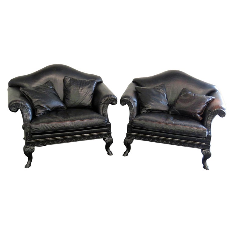 Pair Of Stanford Rams Head Oversized Leather Armchairs