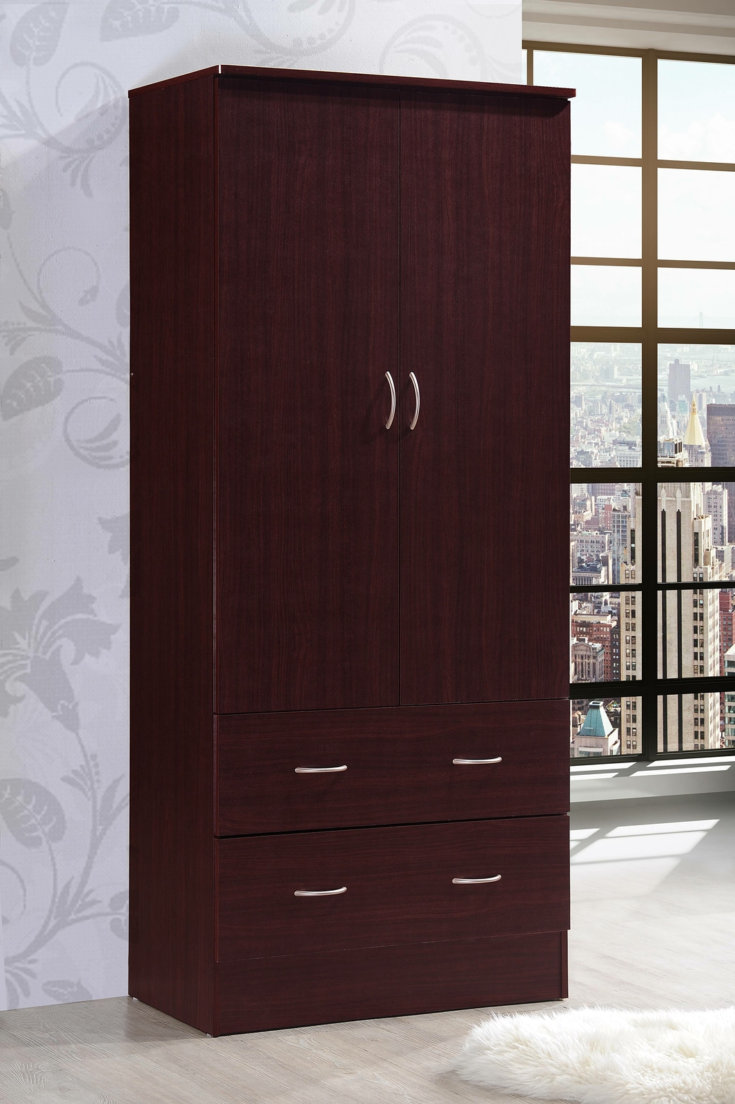 Bedroom Armoire 2 Door 2 Drawers Mahogany Wardrobe Storage Closet Cabinet Wood