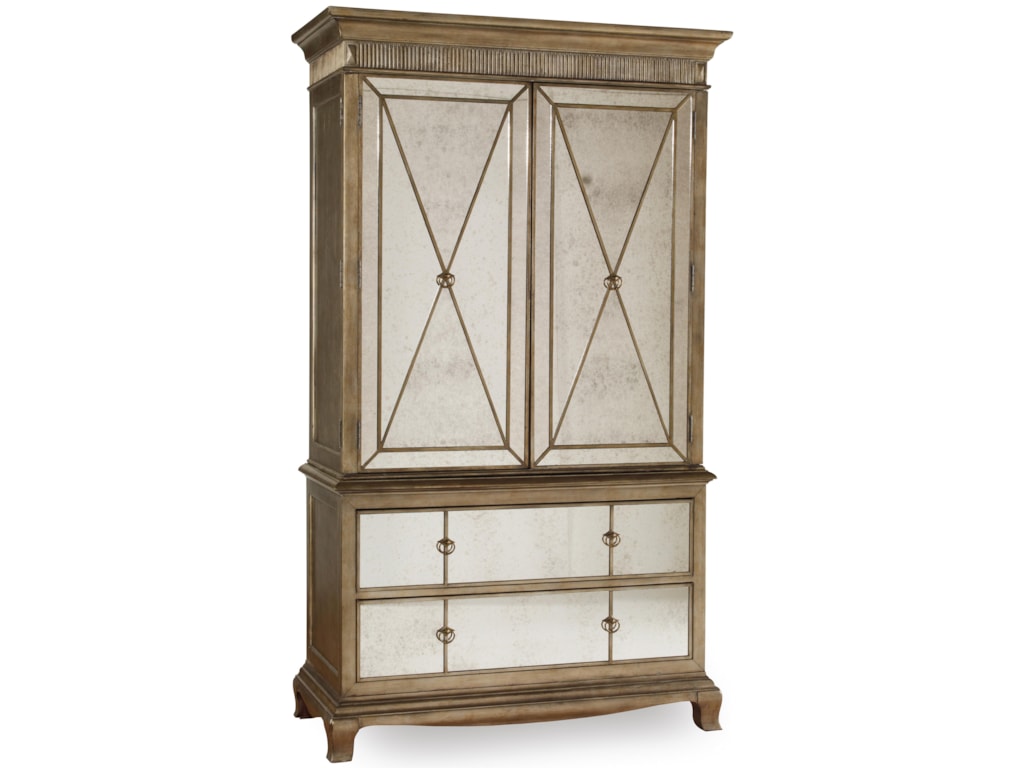 Solid Wood Carved Armoire Wardrobe W Mirror Front
