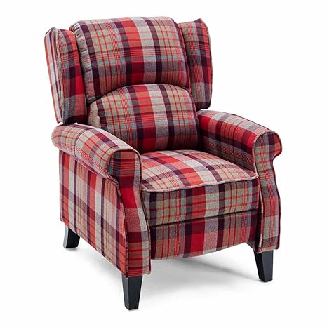 More4homes Eaton Wing Back Fireside Check Fabric Recliner Armchair Sofa Chair Reclining Cinema Red