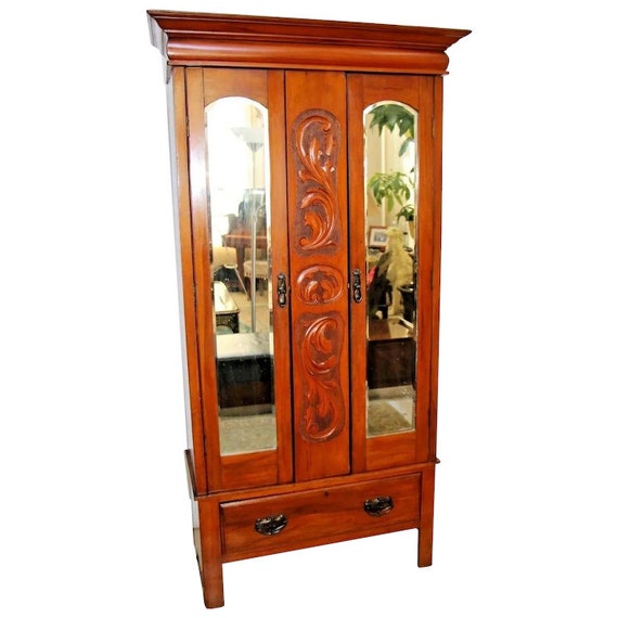Antique Wardrobe Armoire W Beveled Mirror Door