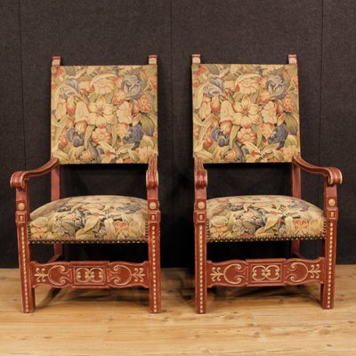 Antique Style French Painted Wooden Armchairs 1960s Set Of 2