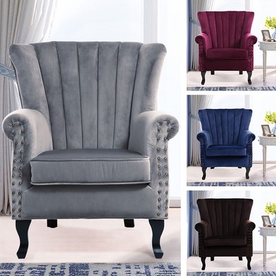 Occasional Wing Chair High Back Velvet Fabric Tub Chair Fireside Armchair Lounge Ebay