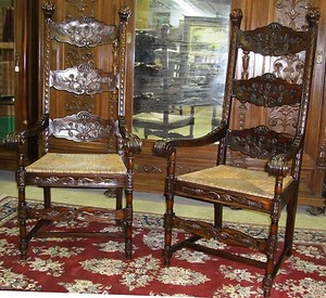 Details About Large Antique Style Very Tall Highback Carved Country French Armchairs Rush Seat