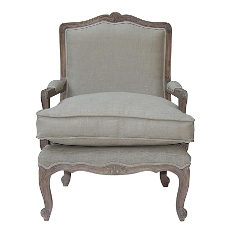 Ramika S Shabby Chic French Style Beautiful Hand Carved Armchair In Ash Finish Upholstery In Natural Linen With Extra Cushion