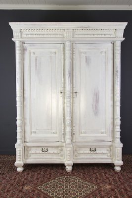 Antique French Double Wardrobe Armoire Solid Pine Victorian