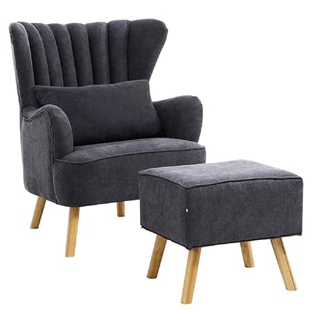 Warmiehomy Modern Fabric Armchair Wing Back Occasional Chair Sofa Lounge Tub Chair Fireside Chair With Footstool Living Room Bedroom Office Furniture