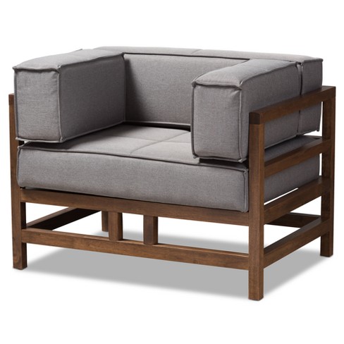 Shaw Midcentury Modern Fabric Upholstered Walnut Wood Armchair Gray Baxton Studio